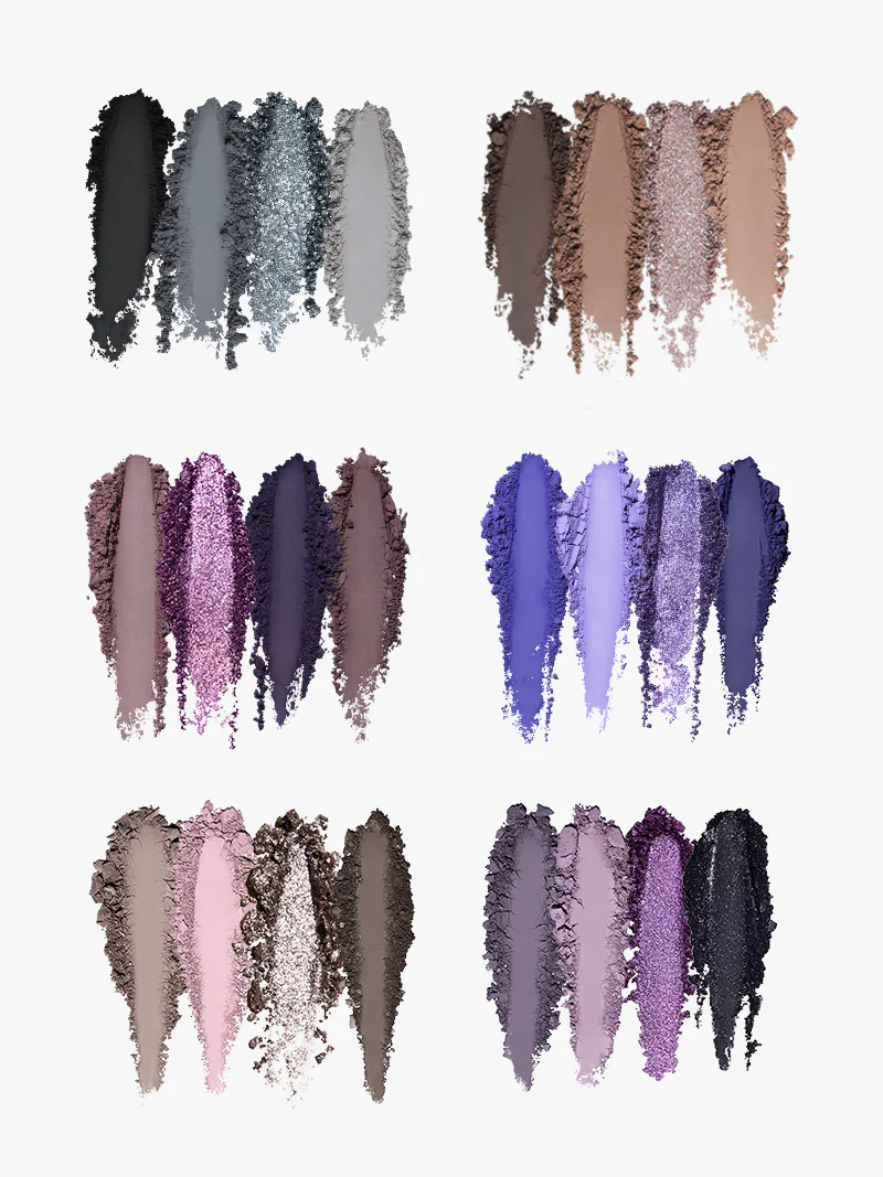 Strums to the tune of premium, eye-enhancing mattes and rip-roaring shimmers. A collection of fine-tuned indigo-grays, dynamic lilacs, and a twinkling, gunmetal black shade makes every stroke of the brush a dreamy delight.